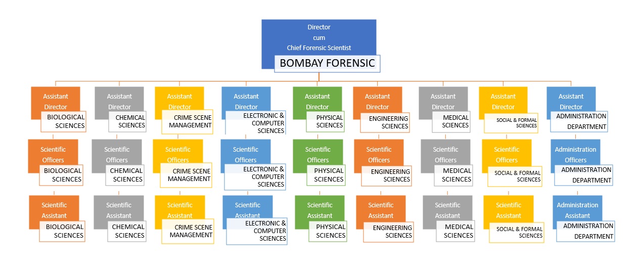 The Bombay Forensic organisation is structured based on the various forensic science divisions.